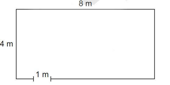 Cô Hương làm một hàng rào quanh vườn hoa có dạng hình chữ nhật với chiều dài 8 m và chiều rộng 4 m. Cô có để lối vào 1 m (như hình vē). Hỏi hàng rào đó dài bao nhiêu mét?