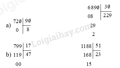 a) Khi thực hiện phép chia hai số có tận cùng là chữ số 0, ta có thể cùng xóa một chữ số 0 ở tận cùng của số chia và số bị chia, rồi chia như bình thường.
