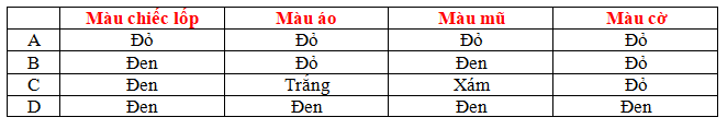 Dưới ánh sáng đỏ, các vật đó sẽ có màu: