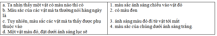 Khi nhìn thấy vật có màu nào (trừ vật đen) thì có ánh sáng màu đó đi vào mắt ta.