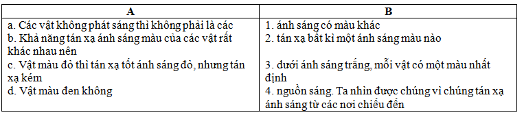 Vật có màu nào thì tán xạ mạnh ánh sáng các màu khác
