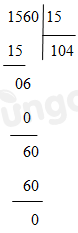Vậy \(1560 = 15.104\). Hay thương của phép chia 1560 cho 15 là 104.