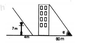 Một cột đèn cao \(7m\) có bóng trên mặt đất dài \(4m\). Gần đó có một tòa nhà cao tầng có bóng trên mặt đất dài \(80m\) (hình vẽ). Em hãy cho biết tòa nhà đó có bao nhiêu tầng, biết rằng mỗi tầng cao \(2m\).