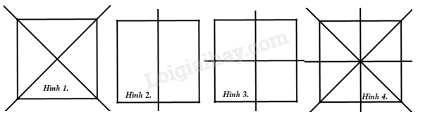 Hình vuông có 4 trục đối xứng gồm 2 đường chéo của hình vuông và 2 đường thẳng đi qua trung điểm từng của cặp cạnh đối diện của hình vuông được vẽ ở hình 4.