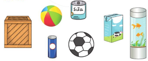 Quan sát những đồ vật xung quanh em và kể tên đồ vật có dạng khối trụ, khối cầu.