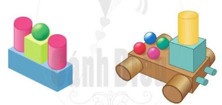 – Hình 1 có: 2 khối trụ, 1 khối cầu, 1 khối lập phương, 1 khối hộp chữ nhật.