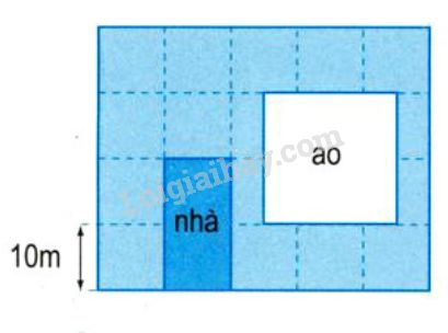 – Diện tích làm ao bằng diện tích hình vuông có độ dài cạnh là 20m. Để tính diện tích đào ao ta lấy cạnh nhân với cạnh.