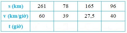 Muốn tính thời gian ta lấy quãng đường chia cho vận tốc, hay \(t = s : v\).
