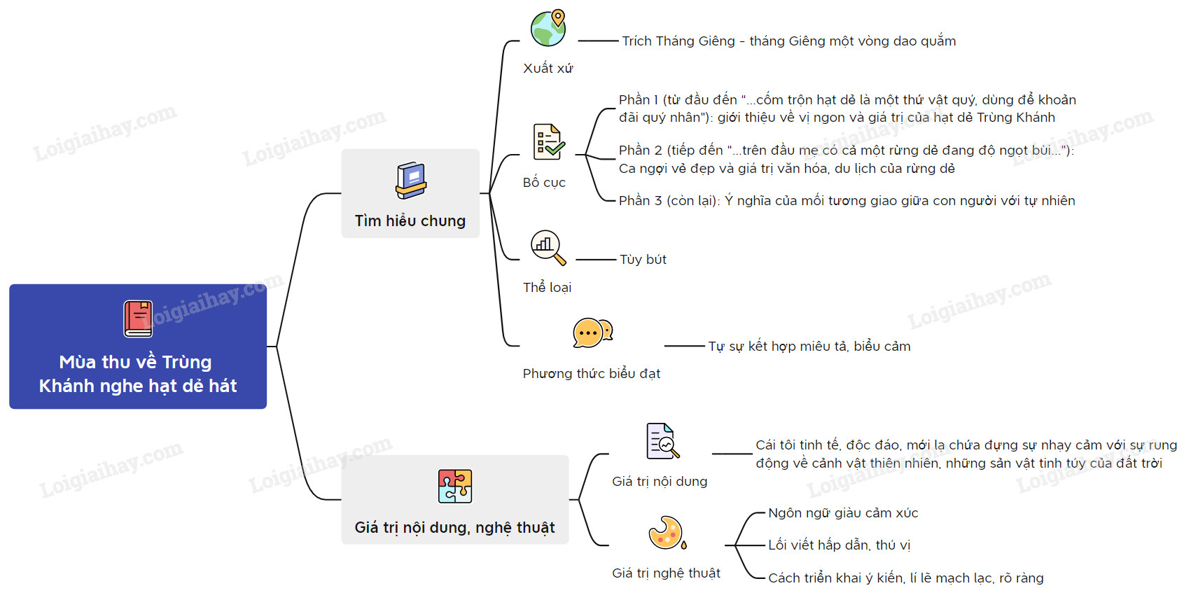 Sơ đồ tư duy về văn bản Mùa thu về Trùng Khánh nghe hạt dẻ hát: