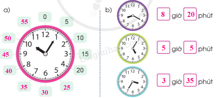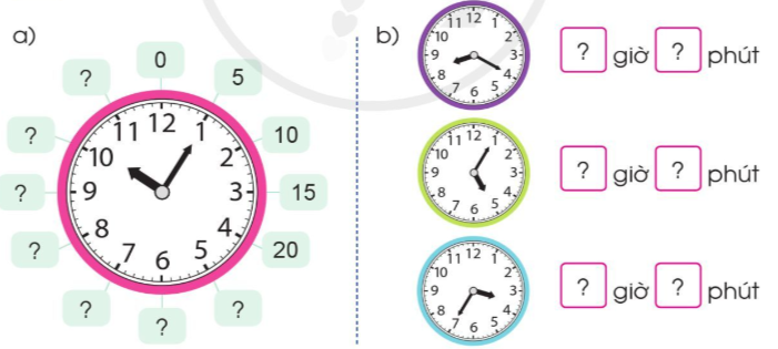 a) Quay kim đồng hồ để đồng hồ chỉ: 6 giờ 5 phút và 6 giờ 10 phút. Từ 6 giờ 5 phút đến 6 giờ 10 phút là bao nhiêu phút?