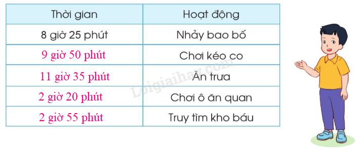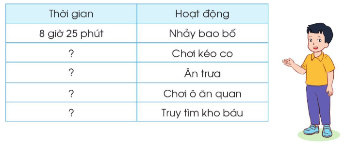 b) Bạn Nam muốn ghi lại thời gian tương ứng với mỗi hoạt động ở câu a, em hãy chỉ dẫn giúp bạn Nam.
