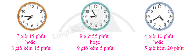Quan sát tranh rồi đọc thời gian trên mỗi đồng hồ theo 2 cách.