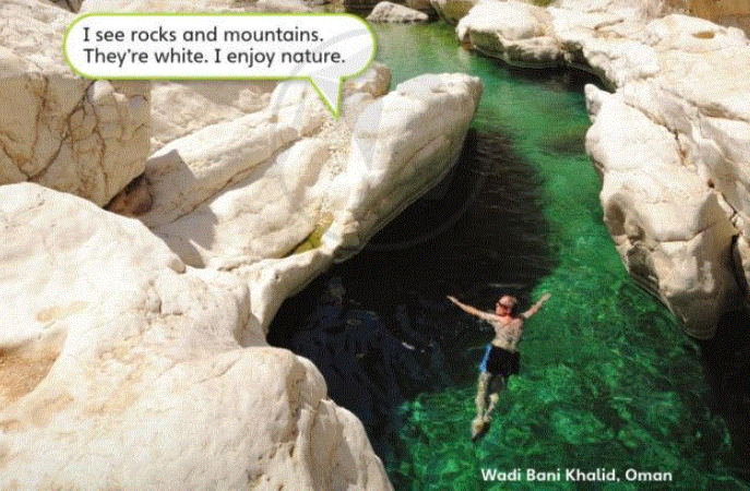 I see rocks and mountains. (Tôi thấy những tảng đá và những ngọn núi.)