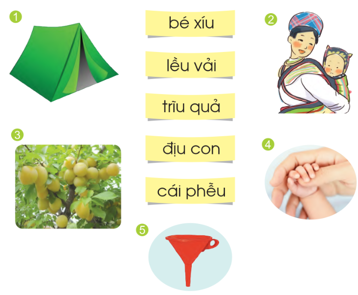 Em quan sát các hình ảnh và đọc các từ để hoàn thành bài tập.