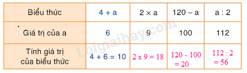 Thay chữ bằng số vào biểu thức rồi tính giá trị biểu thức đó.