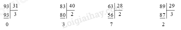 – Thực hiện chia lần lượt từ trái sang phải