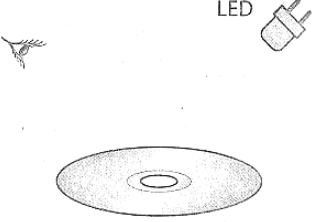 Hãy làm thí nghiệm sau để có thể trả lời câu hỏi của bài. Chiếu ánh sáng phát ra từ một đèn LED lục vào mặt ghi của một đĩa CD rồi quan sát ánh sáng phản xạ từ mặt đĩa theo đủ mọi phía (hình vẽ). Ta sẽ thấy những ánh sáng màu gì?