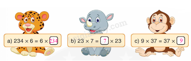 Áp dụng tính chất giao hoán của phép nhân: Khi thực hiện phép nhân hai số, ta có thể đổi chỗ các thừa chỗ mà tích không thay đổi.