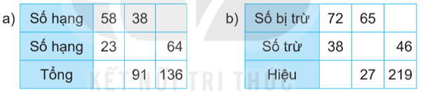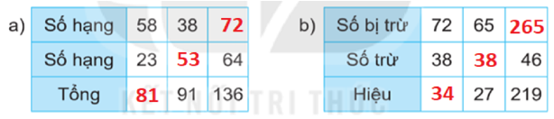 b) Để tìm số bị trừ ta lấy hiệu cộng với số trừ.