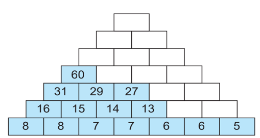 Quan sát hình vẽ ta thấy tổng của hai số cạnh nhau bằng số ở giữa của hàng trên.