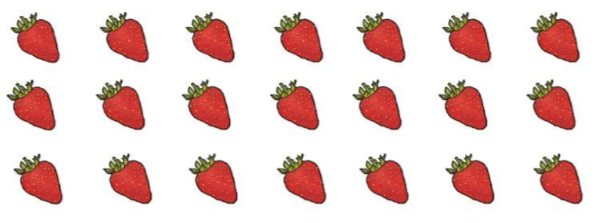 Ta thấy các quả dâu xếp thành 3 hàng, mỗi hàng có 7 quả dâu.