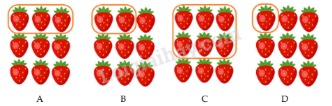 – Chọn hình có số quả dâu tây được khoanh là kết quả của phép chia vừa tìm được