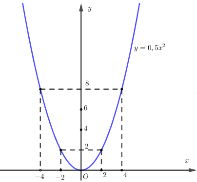 Cho hàm số \(y = 0,5.{x^2}\) có đồ thị là Parabol (P)