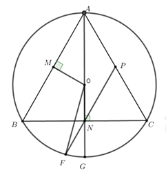 b.PN cắt cung nhỏ BG  của đường tròn (O) tại điểm F. Tính số đo của góc \(\widehat {OFP}\) .