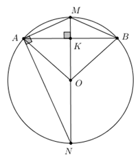 M là điểm chính giữa của cung AB \( \Rightarrow OM \bot AB\) và K là trung điểm của AB