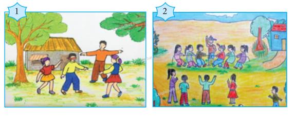 a. Đặt tên cho từng bức tranh. Hai bức tranh liên quan với bài “Trò chơi ném còn” về chủ đề như thế nào? Từ đó, theo em, vấn đề gì trong cuộc sống được đặt ra (1đ)