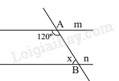 Cho hai đường thẳng m và n song song với nhau như hình vẽ dưới đây, giá trị của x là: