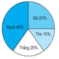 – Từ biểu đồ ta thấy có 40% số học sinh thích màu xanh, 25% số học sinh thích màu đỏ, 20% số học sinh thích màu trắng và 15% số học sinh thích màu tím. Từ đó ta tìm được số học sinh thích mỗi loại màu đó.