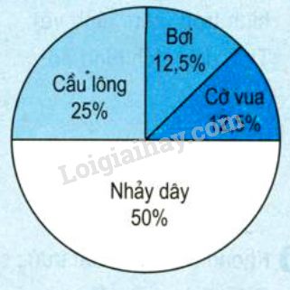 Nhìn vào biểu đồ ta thấy có 12,5% học sinh tham gia môn bơi.