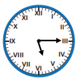 Kim phút chỉ vào số $3$, kim giờ chỉ giữa số $5$ và số $6$.