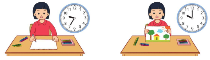 a) Lan bắt đầu vẽ tranh lúc 9 giờ 35 phút và vẽ xong lúc 10 giờ. Vậy Lan vẽ tranh trong thời gian 25 phút.