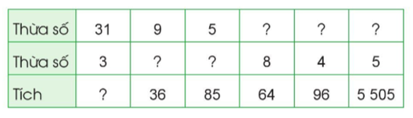 Muốn tìm tích ta lấy thừa số nhân với thừa số.