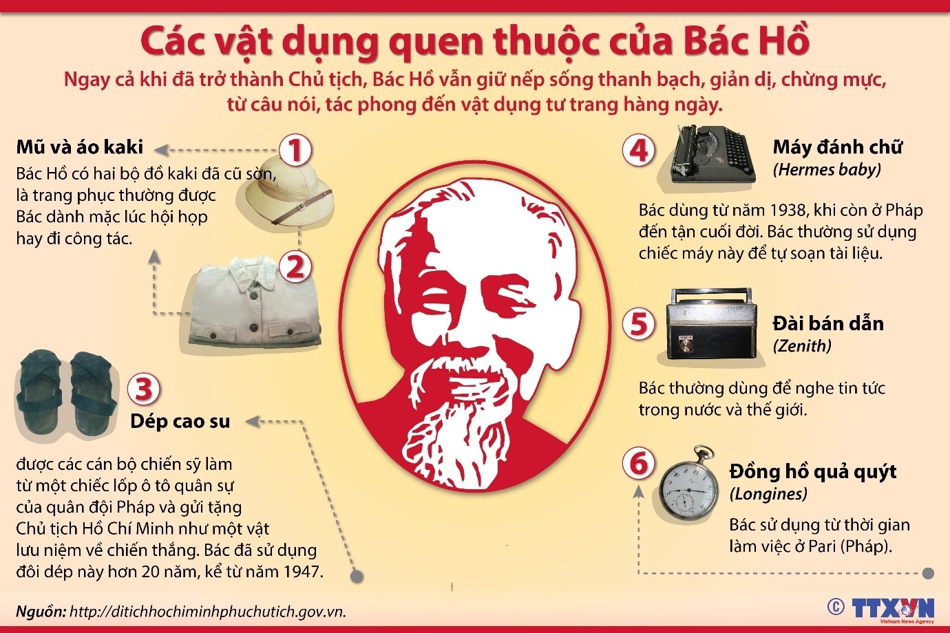 Câu 4. Thông tin về vật dụng nào của Bác được nêu cụ thể, chi tiết về thời gian xuất hiện?