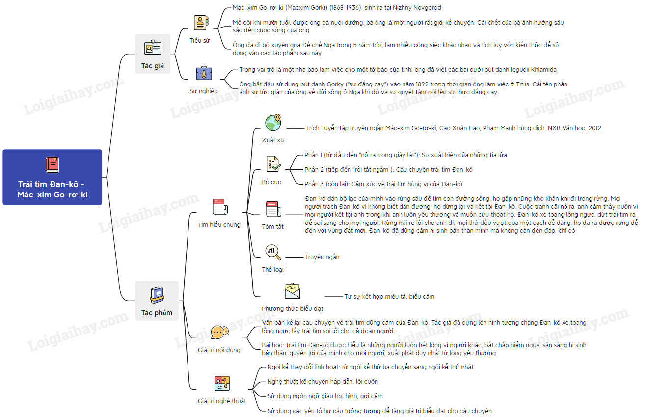 Sơ đồ tư duy văn bản Trái tim Đan-kô – Mác-xim Go-rơ-ki: