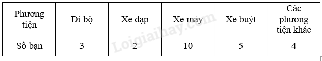 Học sinh lập bảng thống kê phương tiện di chuyển từ nhà đến trường của học sinh trong lớp vào ngày hôm nay