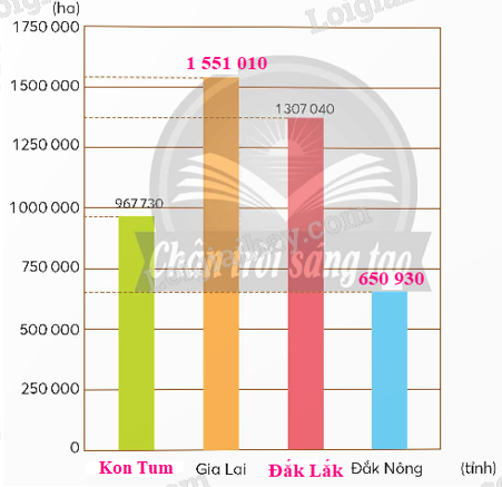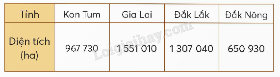d) Tỉnh có diện tích lớn nhất hơn tỉnh có diện tích bé nhất bao nhiêu héc-ta?