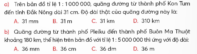 a) Độ dài thật của quãng đường là: 31 x 1 000 000 = 31 000 000 (cm)