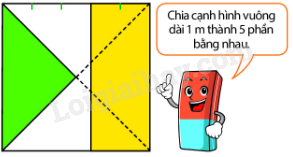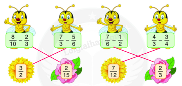 Tính: a) $frac{7}{9} – frac{2}{5}$ Chọn kết quả đúng cho mỗi phép tính sau: <, >, = ? a) $frac{6}{5}m – frac{3}{4}m{rm{ }}.?.{rm{ }}1m$ Quan sát hình bên rồi tìm phân số thích hợp thay cho .?.: Diện tích hình màu vàng lớn hơn diện tích hình màu xanh .?. m2