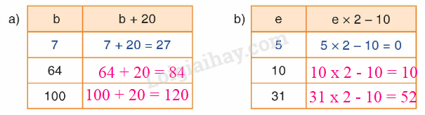 b) Thay chữ bằng số vào biểu thức rồi tính giá trị biểu thức đó.