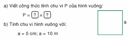 b) Chu vi của hình vuông với a = 5 cm là: 5 x 4 = 20 (cm)