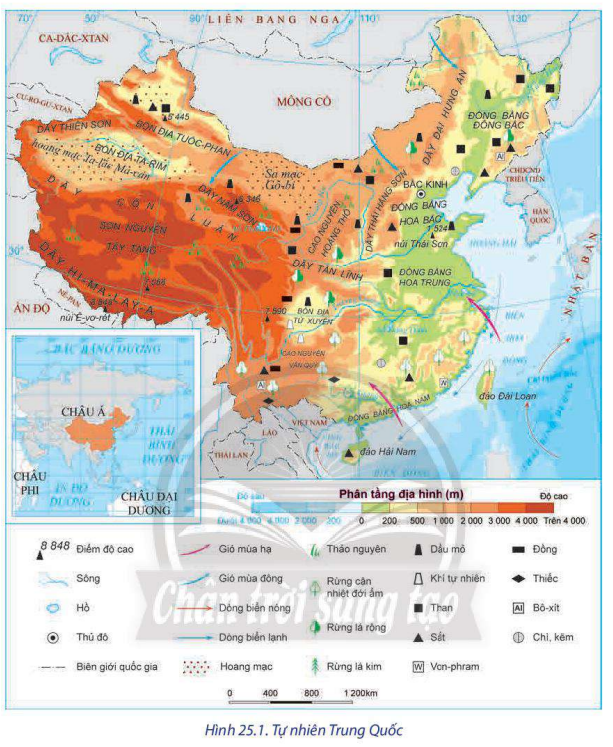 Dựa vào hình 25.1 và thông tin trong bài, hãy cho biết: Những đặc điểm nổi bật về lãnh thổ và vị trí địa lí của Trung Quốc. Ảnh hưởng của phạm vi lãnh thổ, vị trí địa lí đến phát triển kinh tế – xã hội Trung Quốc.