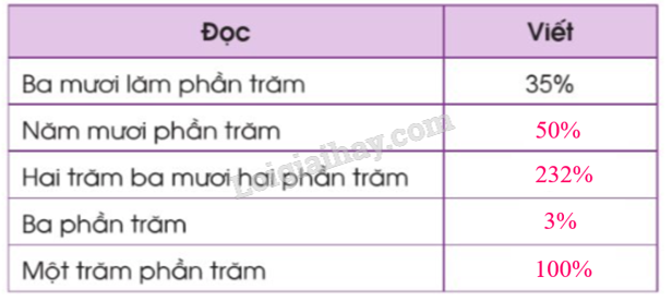 Viết số rồi viết kí hiệu phần trăm cho từng trường hợp