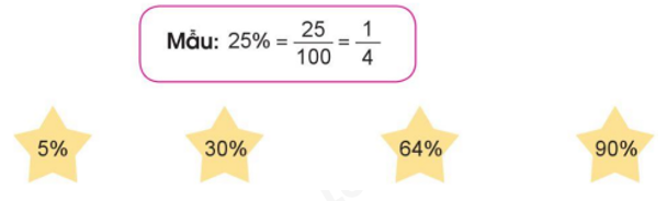 b) Biểu diễn tỉ số phần trăm dưới dạng phân số (theo mẫu):