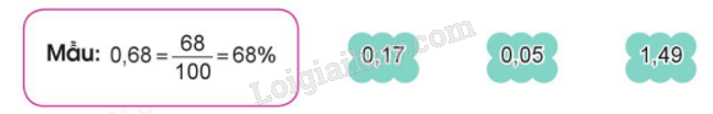 c) Biểu diễn số thập phân dưới dạng tỉ số phần trăm (theo mẫu):