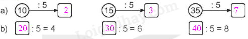 Tính nhẩm kết quả phép tính dựa vào bảng chia 5.