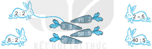 b) Trong các phép tính ghi ở con thỏ, phép tính 2 : 2 có kết quả bé nhất.